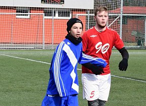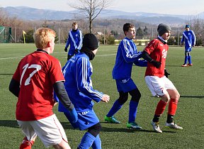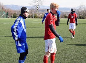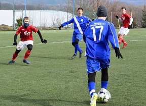 Stejně jako U18, se museli Valcíři vypořádat s těžkým terénem, a jako již celý půlrok v mistrovské soutěži i z fyzickou a výškovou převahou staršího soupeře. Bohužel také stále vinou absencí a zranění s úzkým kádrem. Svěřenci trenéra Rašky se však se situací poprali solidně. Ostatně do velkých šancích se v první půli dostávali jen oni. Dvakrát se propracoval do dobré příležitosti Sebastian Šeba. Nicméně, skóre se ani v jednom z případů neměnilo. Dobrou možnost měl i hlavičkující Králík.