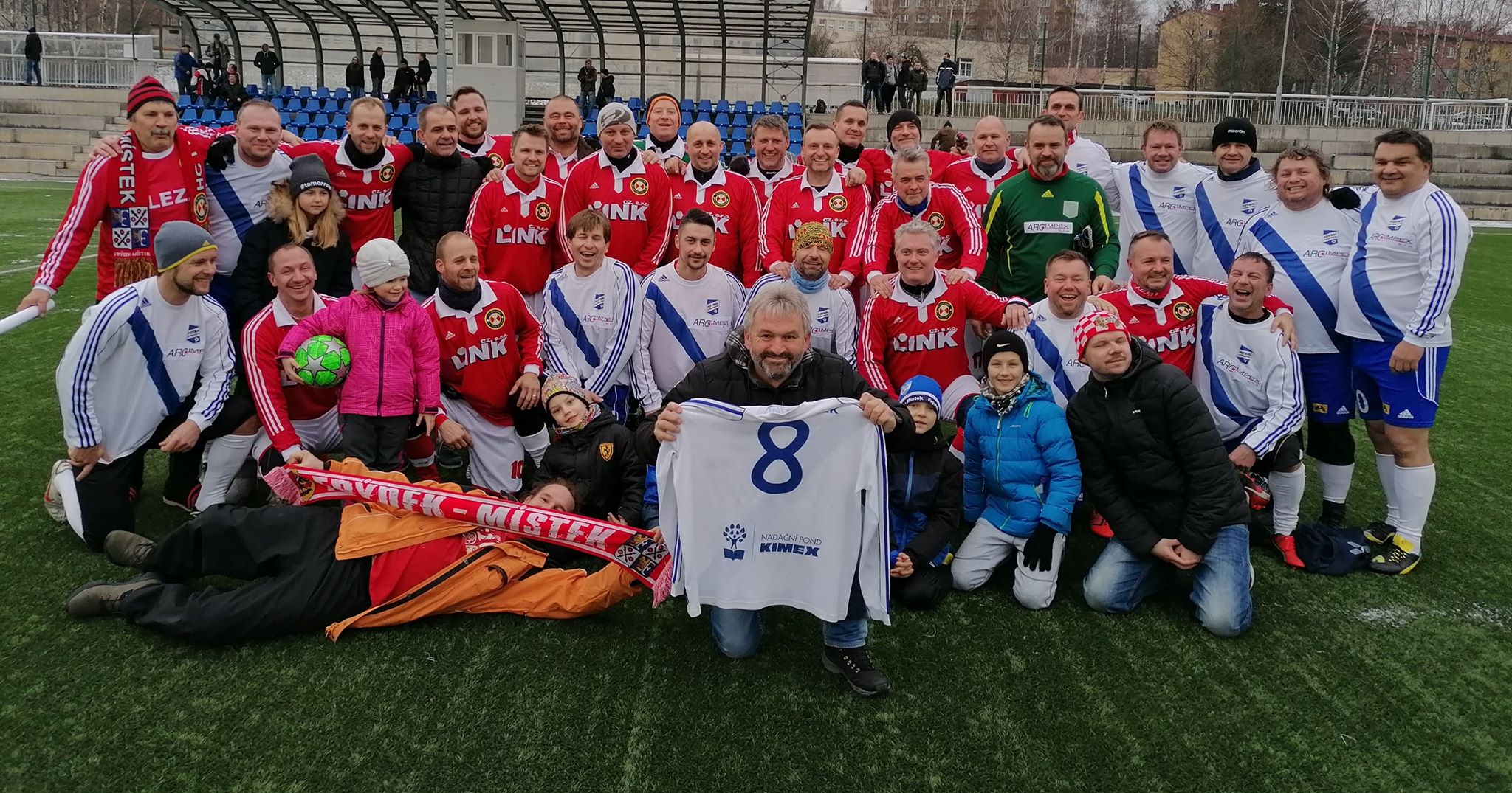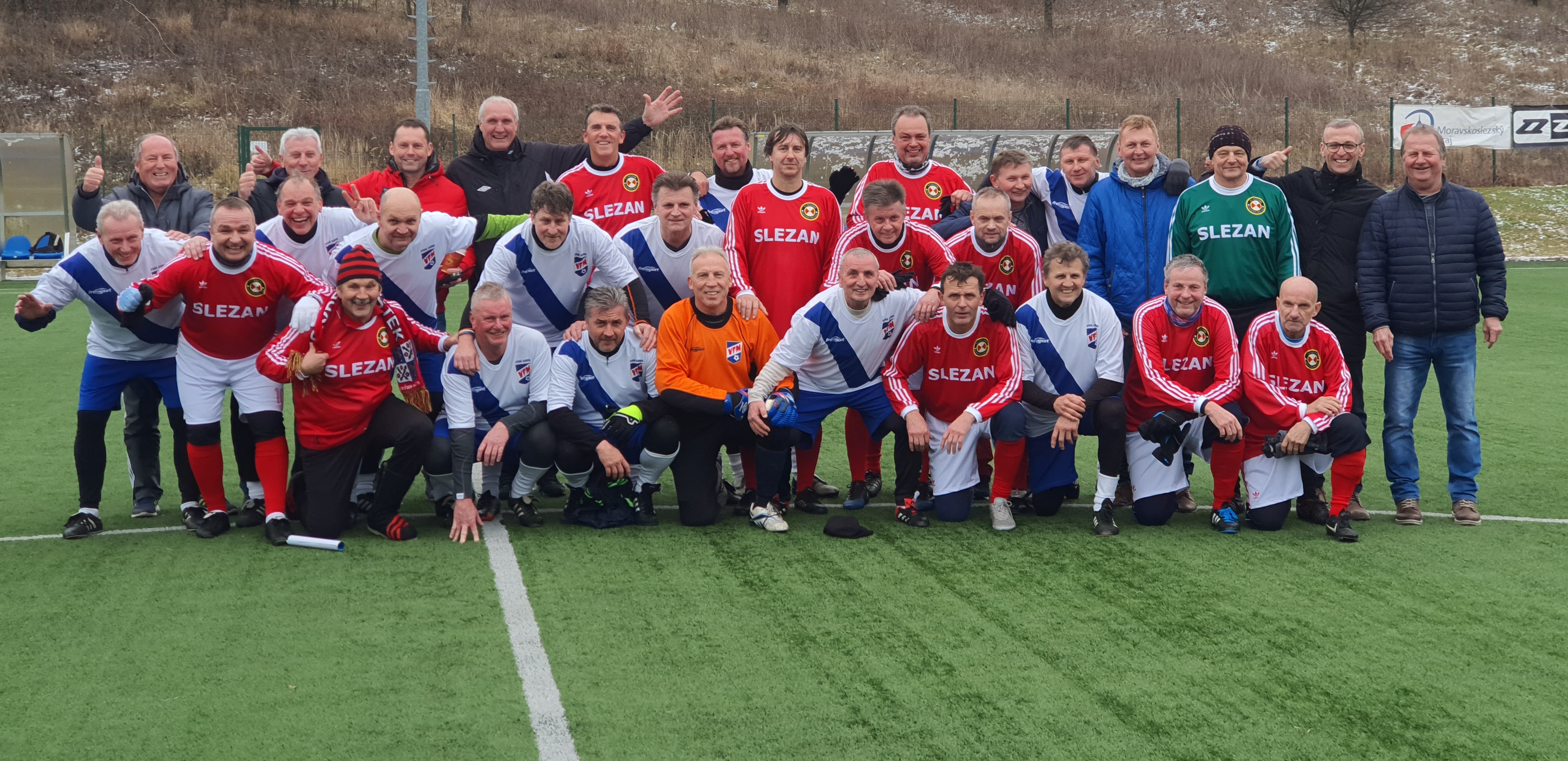 Hodinu před pravým polednem dostali na hřišti naopak prostor fotbalisté dříve narození a znovu se bylo nač dívat. Chvílemi to dokonce vypadalo na prolomení nepříznivé série, když fotbalisté Slezanu vedli nad svým soupeřem tříbrankovým rozdílem. Valcíři se ale nevzdali a čtyřmi kontry dokázali duel zvrátit, čímž si do statistických análů zapisují šesté vítězství (3x skončilo derby nerozhodně). Během pozápasového krátkého posezení došlo i na slavnostní chvíli, kdy bývalý kouč Lipiny Ján Zachar poblahopřál k životnímu jubileu obránci Václavu Pěcháčkovi, který v březnu letošního roku oslavil krásných 60 let (foto níže).