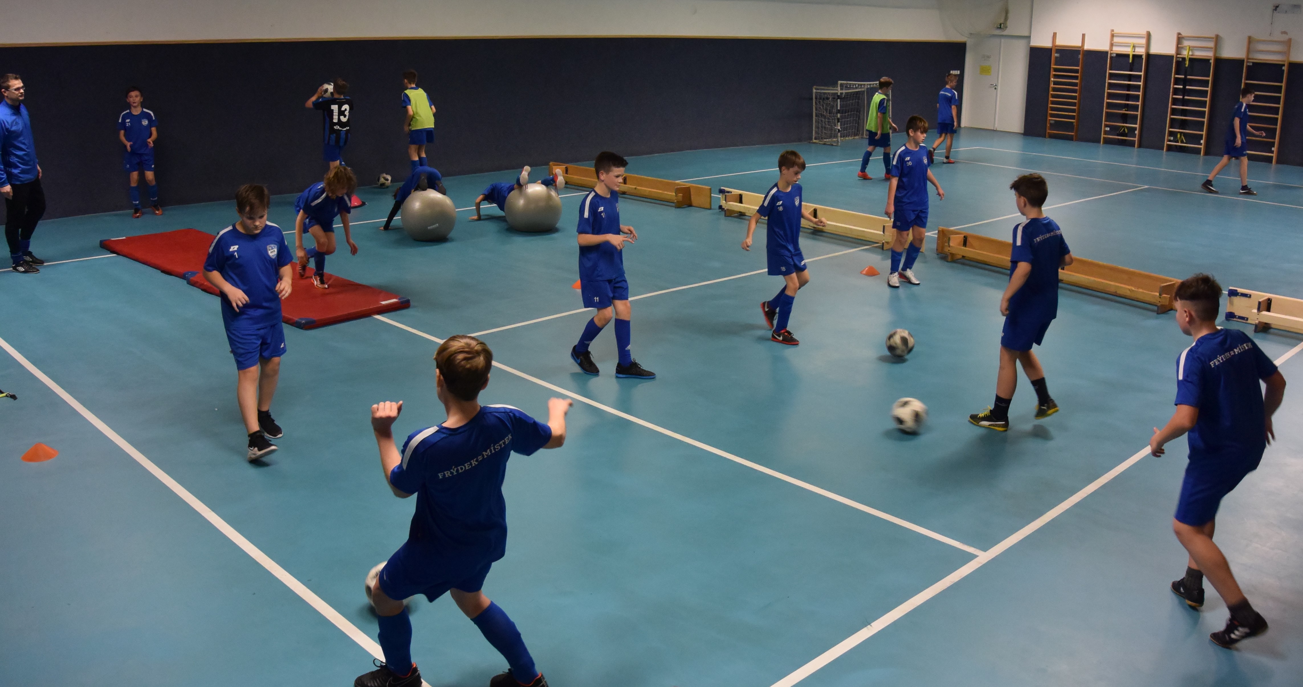 Také žáci pochopitelně využili k úvodnímu tréninku areál ve Stovkách. Kategorie U15 a U14 trénovala na umělé trávě, U13 obsadila tělocvičnu a U12 trénovala v přilehlé hale SOU. Rozcvička, bago, fotbal, to byla náplň starších žáků. U13 si rozdělila tělocvičnu do několika stanovišť – fotbal, přihrávková cvičení, gymnastika. U12 byla rozdělená na skupiny, jedna skupina hrála fotbal, druhá pak plnila dovednostní testy. Pak se vše prostřídalo.