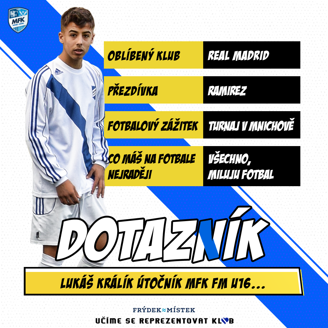 Dotazník Lukáš Králík / U16: Kdybych nehrál fotbal, jezdil bych motokros