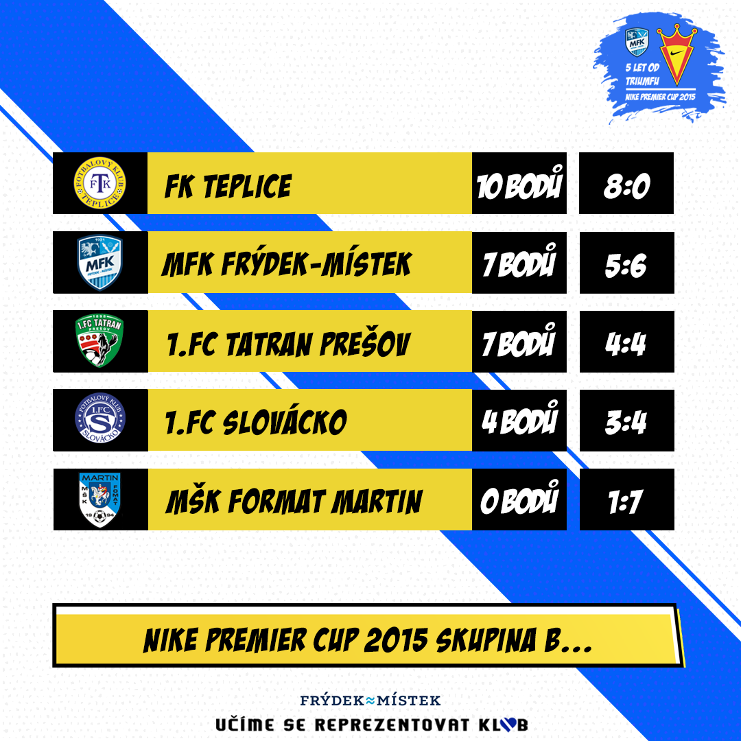 Ještě, než mladí frýdecko-místečtí fotbalisté premiérově nakoukli do turnaje, měl už Nike Premier Cup bohatou historii a vybudovanou značnou prestiž. V kategorii U15 byste nenašli v té době lepšího turnaje. Koncentrovaly se tu nejlepší týmy z Československa. Turnaj se poprvé konal roku 1996, kdy zvítězil Zlín. Poslední ročník se odehrál v roce 2016, kdy se radovala slovenská Trnava.