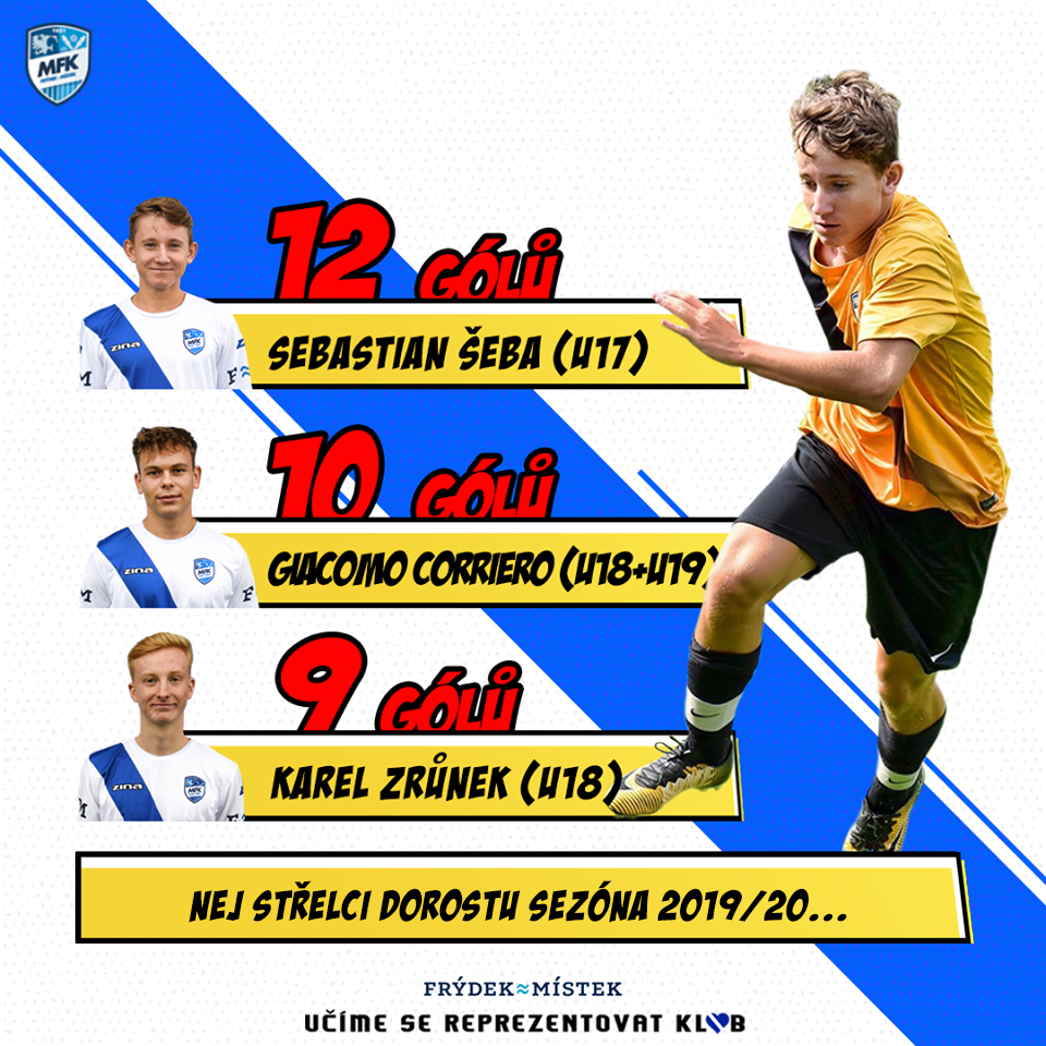 V dorostenecké kategorii sliboval jarní boj o střeleckou korunu drama. Loňský obhájce Sebastian Šeba měl na útočníka U19 Giacoma Corriera pouze dvougólový náskok. Žádné drama se však nekonalo, jaro bylo odpískáno a forward U17 se tak podruhé za sebou stal nejlepším střelcem dorosteneckých kategorií Frýdku-Místku. Uvidíme, zda bude příští sezónu útočit na hattrick.