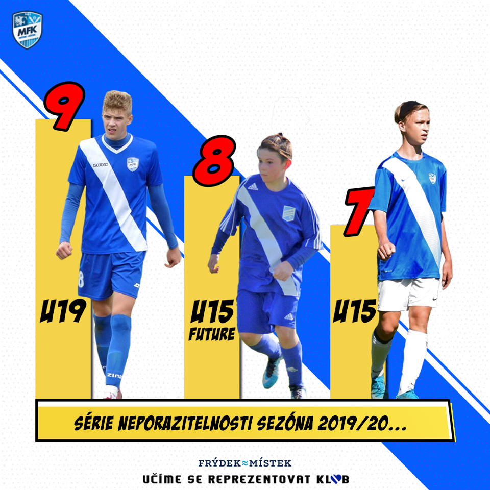 Zajímavou statistickou věcí je pak podzimní účinkování Future U13. Doma se příliš nedařilo, venku však svěřenci trenéra Davida Hejdy neztratily ani bod – šest venkovních výher v řadě, což se žádnému z našich mládežnických týmů nepovedlo. Statistickým primátem se může pochlubit také U18. Ta totiž tři zápasy v řadě neinkasovala. Domácí výhra nad Přerovem 4:0, výhra ve Vsetíně 3:0 a domácí výhra nad Starou Bělou 5:0. Dvě čistá konta pro Kubu Ruska, jedno pro Jirku Dragona.