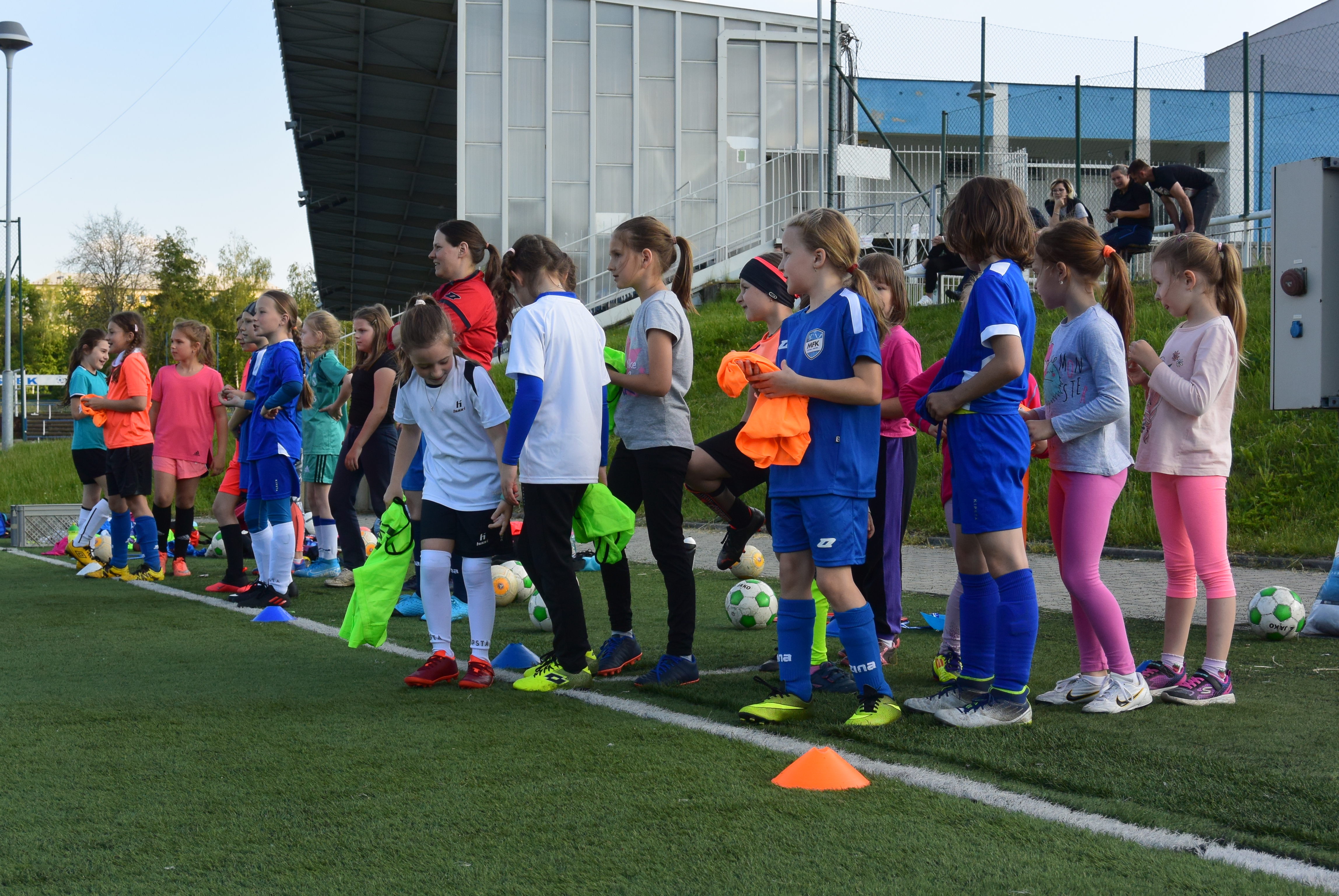 Marně byste hledali ve středu na hřišti s umělým trávníkem ve Stovkách volné místečko. Nejen, že trénovala část našich přípravek, zároveň se konal i trénink Valcířek, které v červnu začaly se společnými tréninky. Středeční podvečer byl též možností pro nové dívky, které by rády za náš klub hrály. Jednalo se totiž také o trénink náborový. „Ve středu se u nás ve Stovkách na hřišti bavilo několik desítek dívek tímto nádherným sportem! Velmi nás těší, že se nám daří naplňovat všechny věkové kategorie, že je strany holek vidět obrovské zapálení naučit se ovládat kulatou věc a zlepšovat se,“ uvedla jedna z trenérek Valcířek Jana Sikorová a dále pokračovala. „Velké díky patří také rodičům, kteří své slečny parádně podporují! A chtěla bych poděkovat hráčkám FK GC Havířov a MSK Orlová, které nám přišly s organizací a tréninkem pomoci, ať si jej můžeme všichni naplno užít, ale také odpovídat na dotazy rodičů a nových hráček.“
