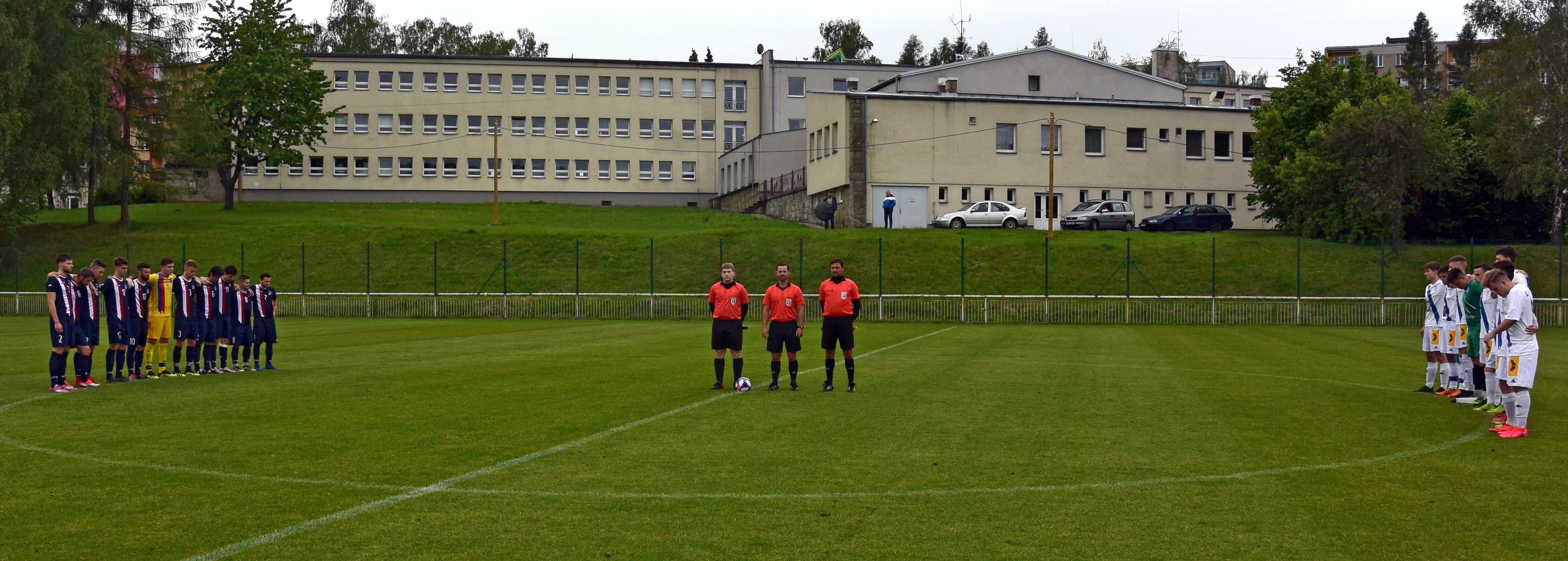 Valcíři začali svižně a hned v úvodu si vypracovali dvě dobré šance. Zblízka se nepovedlo otevřít skóre Psotovi, vzápětí pak nebezpečně hlavičkoval Cempírek. Skóre se povedlo otevřít až Marku Siedlokovi, který využil zaváhání hostující obrany. Poprvé v turnaji jsme se tak ocitli ve vedení. Netrvalo však bohužel dlouho. Takřka vzápětí srovnal skóre bývalý hráč Frýdku-Místku Dominik Vojvodík, na kterého navázal Jakub Strouhal. Bleskový obrat nás ale nezlomil. Ještě do přestávky založil úspěšnou akci Psota, na jejímž konci byl opět Marek Siedlok.