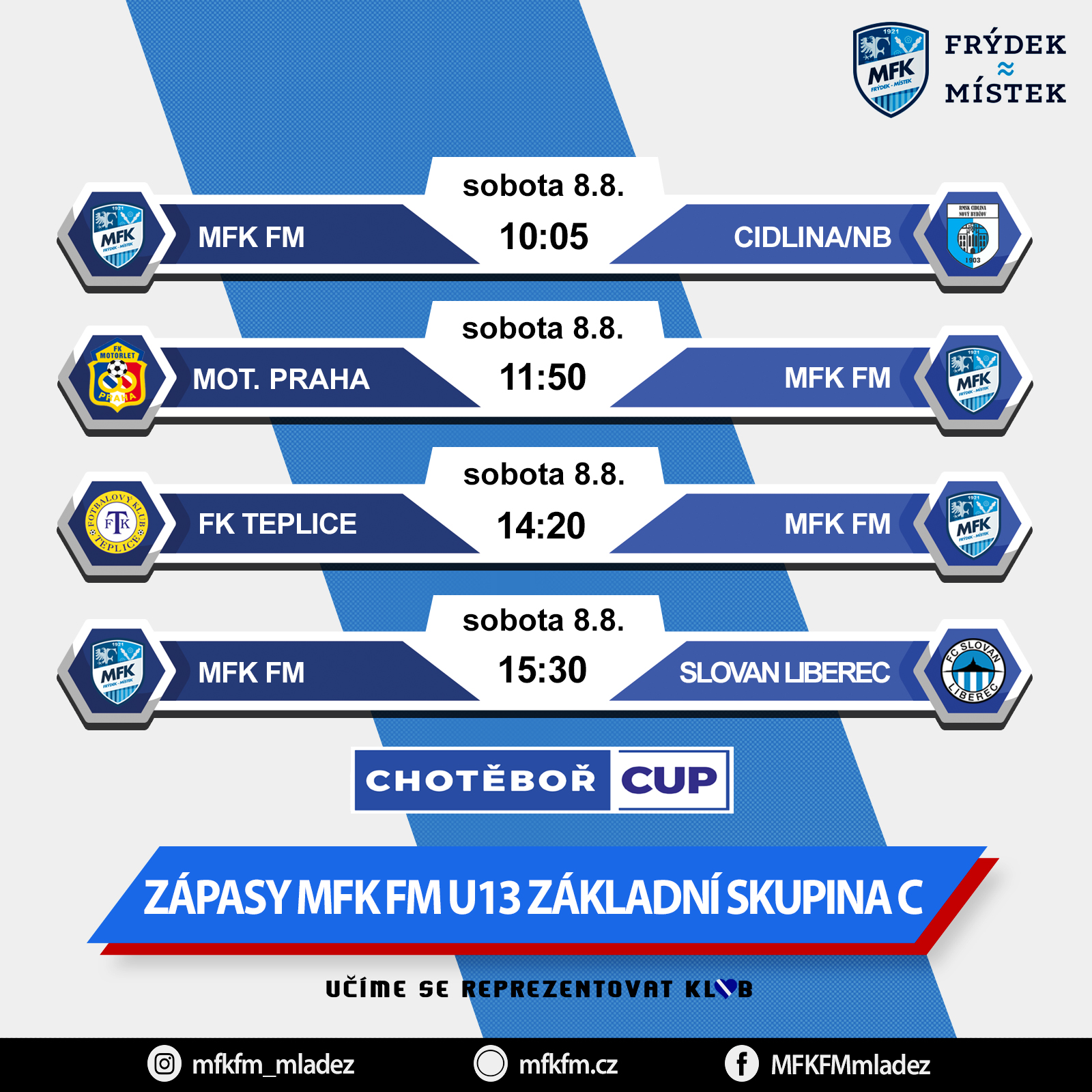 Chotěboř Cup nabídne 8. a 9. srpna kvalitně obsazený turnaj a jistě zajímavé a dramatické zápasy. Do Chotěboře se nakonec sjede pouze tuzemská špička, byť byly v plánu i zahraniční soupeři. Zasáhla však vyšší moc v podobě nelehké koronavirové situace. Turnaje se zúčastní 17 týmů, kterou budou rozděleny do tří základních skupin. Lipina byla nalosována do skupiny C, kde se utká s Teplicemi, Motorletem Praha, Slovanem Liberec a Cidlinou/Novým Bydžovem. Tyto zápasy odehrajeme ve sprotovním areálu Nasavrky.