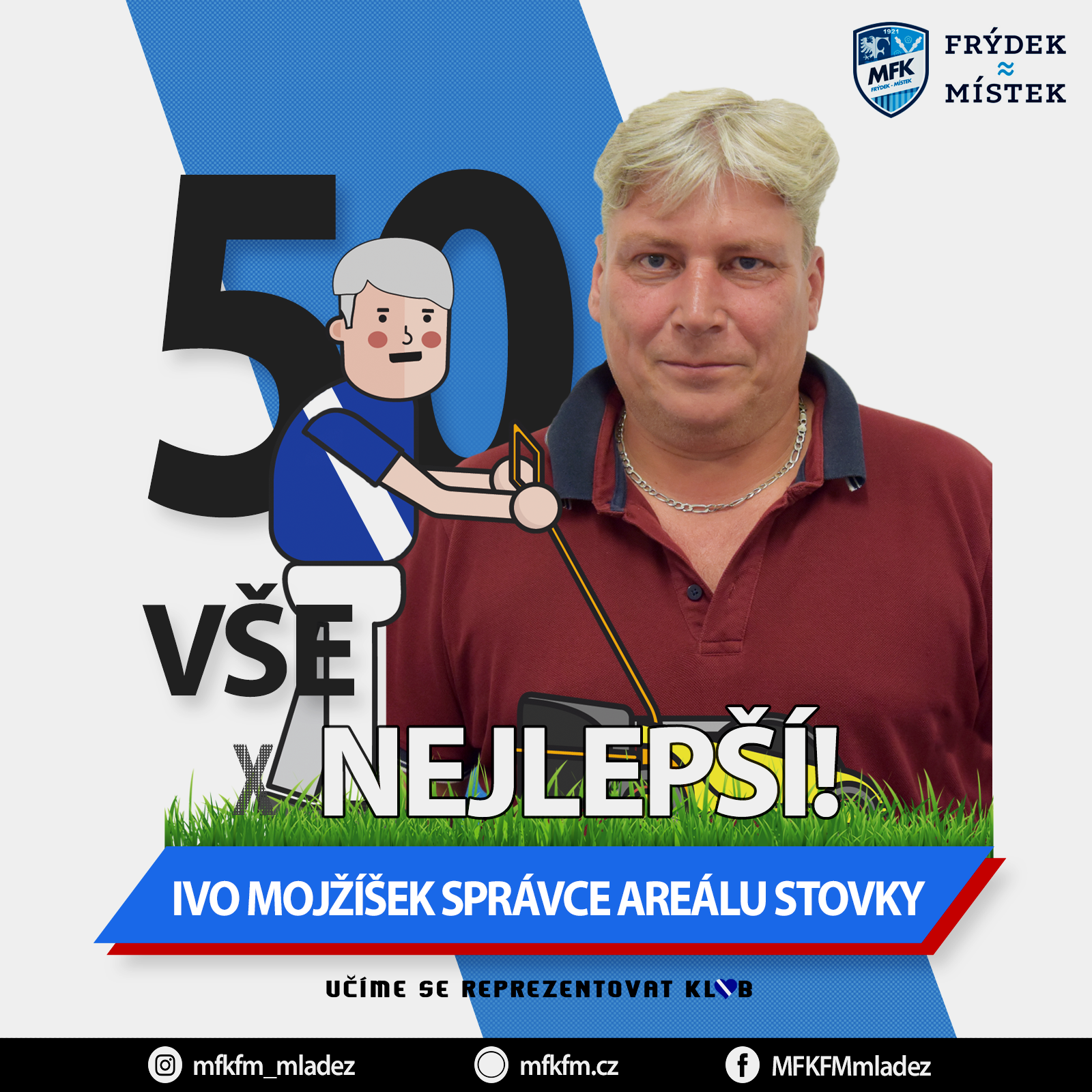 F r ý d e k-M í s t e k - Góly, skvělé zákroky, povedené kličky, fotbalové hvězdy, to vše obdivují fotbaloví fanoušci po celém světě. Jsou však lidé, kteří nejsou fotbalové veřejnosti tolik na očích, a přesto jsou pro tuto nádhernou hru nesmírně důležití. Takovou osobou je i Ivo Mojžíšek, jenž se stará o náš krásný areál Stovky, a který dnes slaví 50. narozeniny. Přejeme vše nejlepší.