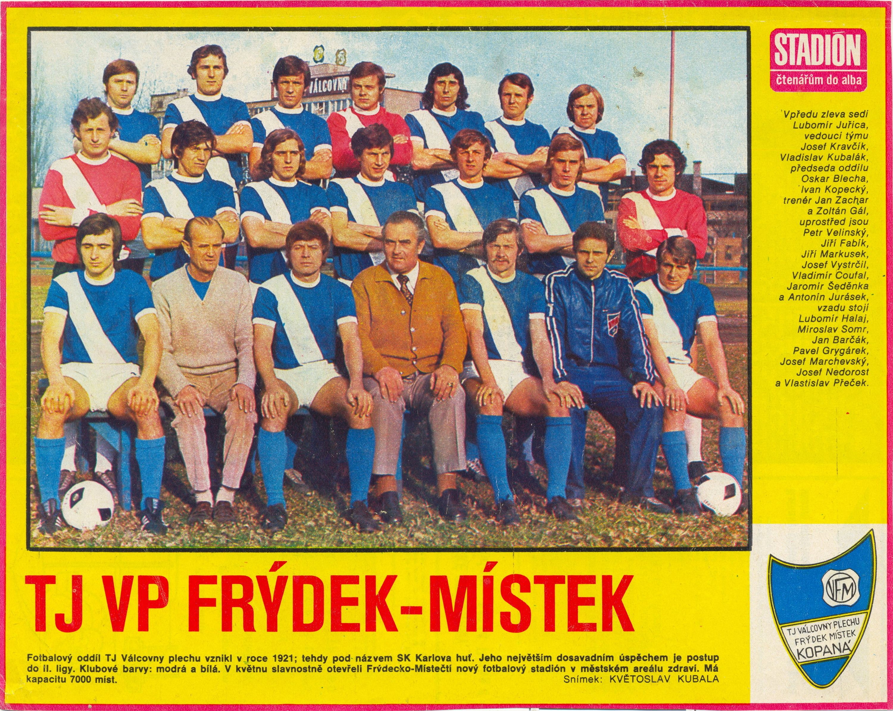 Miroslav Somr proměňuje pokutový kop proti Zlínu v utkání 3. ligy 1974/1975.