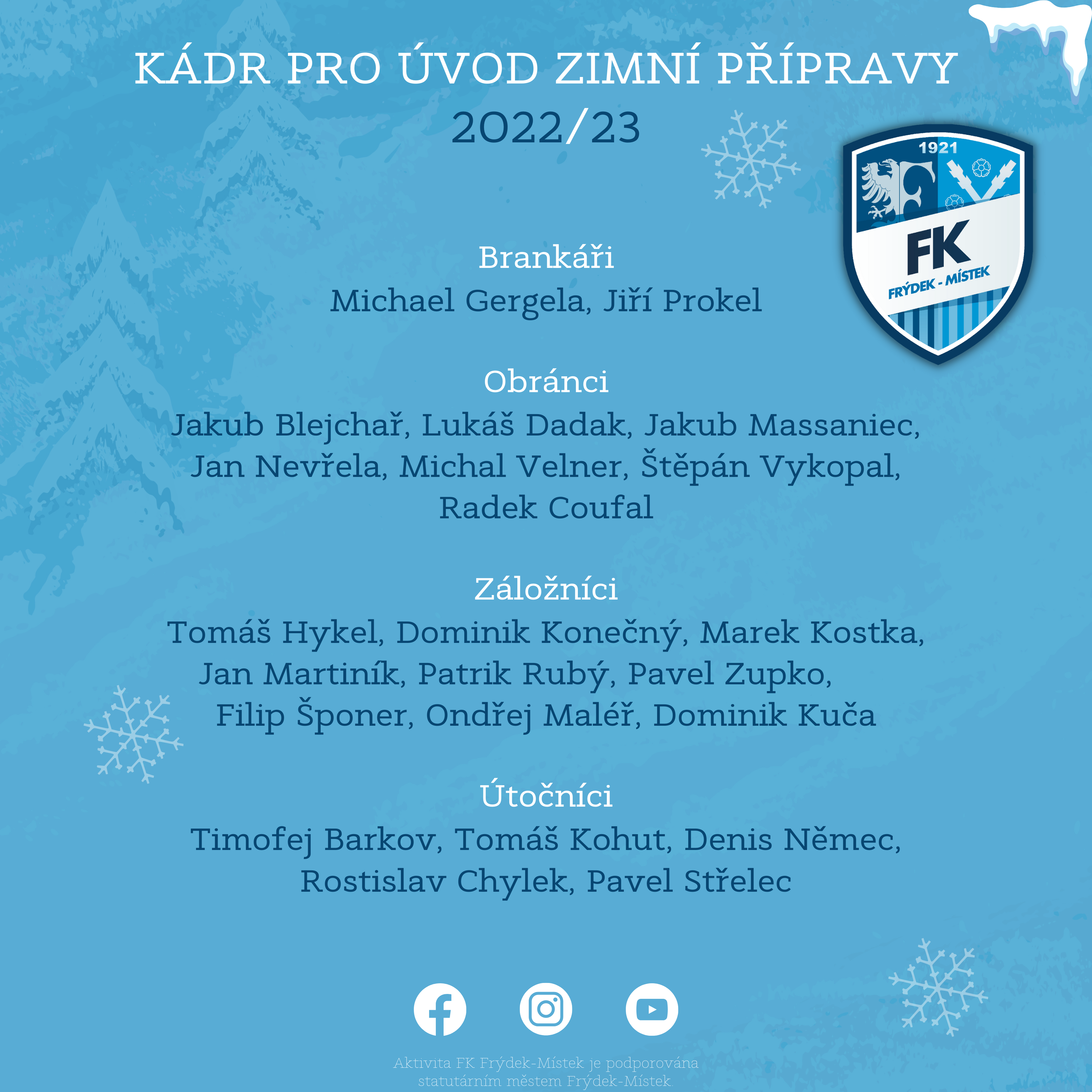 Již minulý týden se měli Frýdeckomístečtí utkat s Dubnicí nad Váhom, která ale přípravný zápas odřekla z důvodu výměny hlavního trenéra a tudíž také ke změně plánu přípravy. Do zimní přípravy Válcoven už nezasáhli hráči Marián Kovařík, Tomáš Kirschner, Martin Vlachovský a Matteo Burgo. Asistent trenéra Marek Smrčka naopak prozradil, kteří hráči se připojili k A-týmu a budou se rvát o své místo do jarní části sezóny.