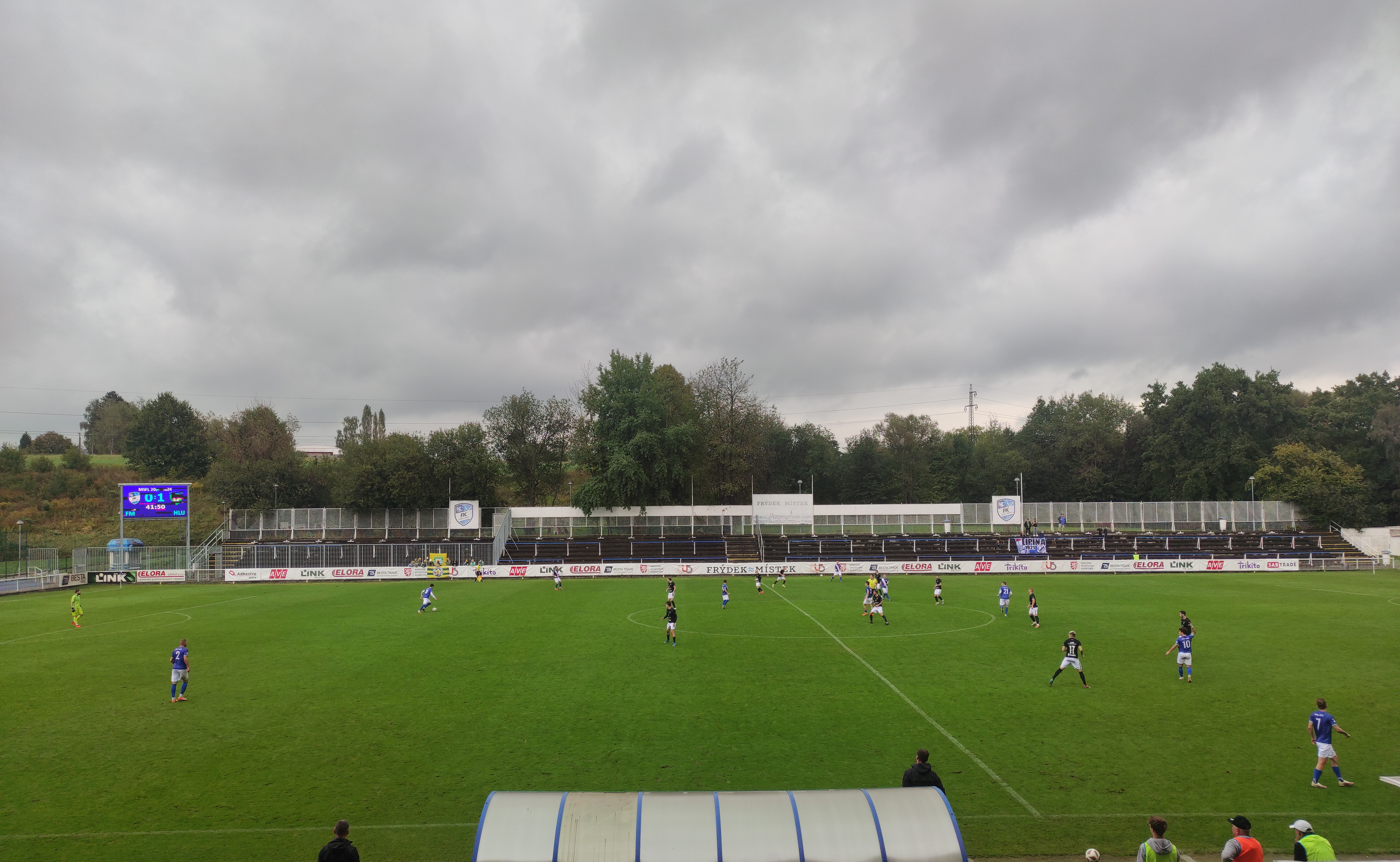 Ve 21. minutě totiž nejprve zakončení Jakuba Ptáčka zblokoval skluzem Coufal. Vzápětí se ve velké příležitosti ocitl také Smékal, ale jeho první pokus opět zastavil Coufal a druhá střela minula svatyni Frýdku-Místku. Po půl hodině utkání Ptáček našel uvnitř vápna zcela volného Smékala, ale ten nedokázal míč dostatečně sklopit a přestřelil domácí bránu. Ke konci první půle si tlak vytvořila také Lipina. Obuchova střela levačkou na hranici vápna byla zblokována ke kopačkám Velnera. Domácí kapitán to zkoušel technicky na zadní, ale míč skončil těsně nad břevnem. Po první půli vedli Hlučínští 1:0.