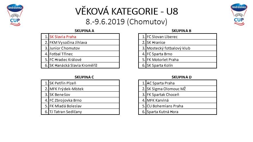 To nejmladší kategorie mladších žáků (U12) vyrazí na Ondrášovku o pár dní dříve. Jejich finálový turnaj je na pořadu ve dnech 18. - 19. května a bude se hrát v Šumperku. Svěřenci trenérů Martina Rojíčka a Františka Hlavatíka byli nalosování do skupiny A společně s družstvy: AC Sparta Praha, SK Sigma Olomouc, FK Ústí nad Labem, Fotbalový club Zlín a Junior Chomutov.
