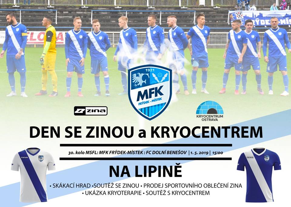 V případě druhého střetnutí jde pouze o změnu času začátku střetnutí. Ve středu 1. 5. mají Valcíři v domácím střetnutí předehrávat utkání 30. hracího kola, kdy soupeřem Žižkových svěřenců budou fotbalisté FC Dolní Benešov. Toto střetnutí má začátek naplánován nově na 15 hodinu. V rámci zápasu se uskuteční Den se Zinou a Kryocentrem Ostrava. Na své si tak přijdou nejen dospělí fanoušci Lipiny, ale také i jejich ratolesti (skákací hrad, soutěž se Zinou, prodej sportovního obleční této značky, ukázka kryoterapie, soutěž s Kryocentrem Ostrava).