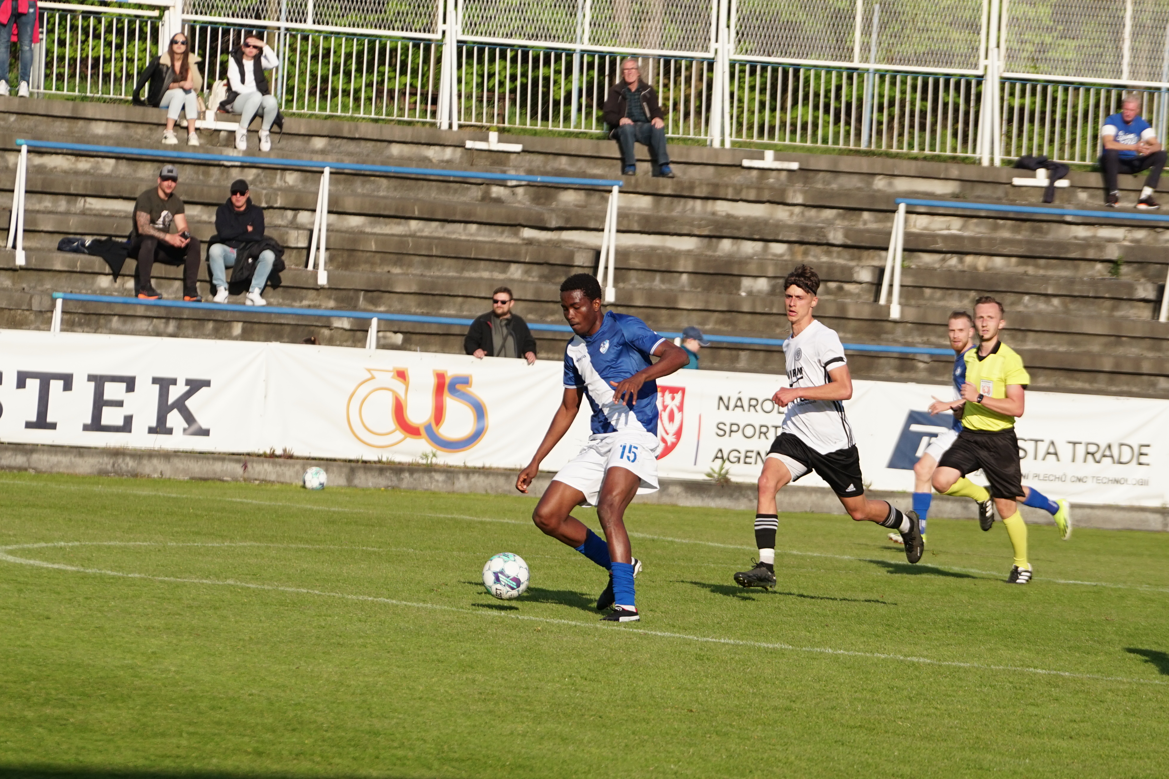 Začátek utkání opět začal pozvolně a na první šanci si 360 diváků muselo počkat. Ve 22. minutě Rubý uvolnil Michlíka, ale ten nedokázal včas zakončit. O čtyři minuty později už Válcovnám akce vyšla dokonale. Rubý centroval z levé strany vápna, míč se snažil odhlavičkovat obránce, po kterém se ale k balónu dostal Gorčica, který z voleje našel Anwara Imidera a ten z hranice malého vápna rovněž z voleje vstřelil svůj první gól v mistrovském utkání A-týmu - 1:0.