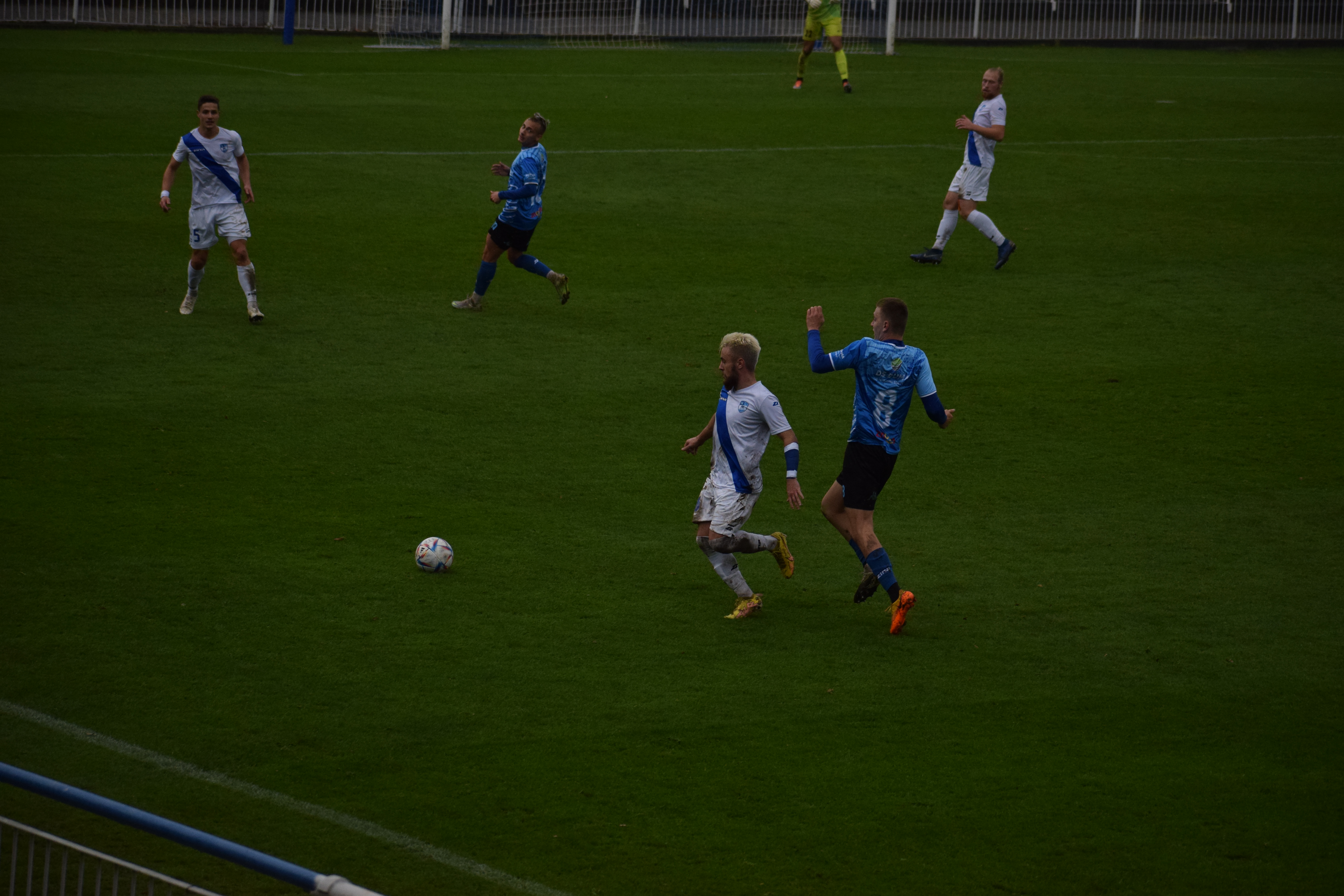 Následně se do hry dostalo také Znojmo, které se čím dál blíž přibližovalo svatyni Michaela Gergely. Domácí gólman ale zvládal boxovat míče, které lítaly z obou stran. Ve 40. minutě se ovšem Jakub Blejchař dopustil fatální chyby, když jako poslední hráč přišel o balón, který mu ukradl Bakaramoko Baikoro. Ten následně z pravé strany vápna našel na druhé straně volného Josefa Čtvrtníčka a ten míč doklepl do prázdné svatyně - 1:1.