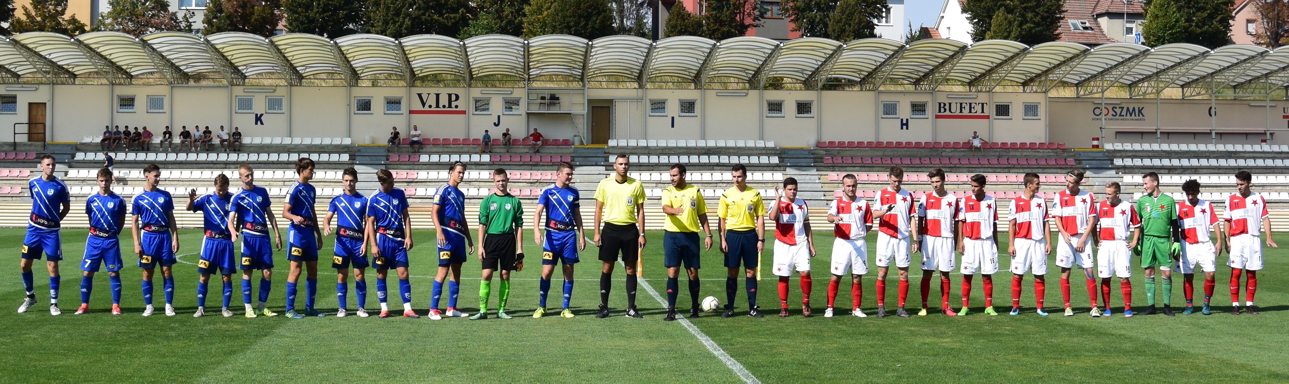 Karel Heinz (Kroměříž): Druhé mistrovské utkání bylo po fyzické stránce velmi náročné a bojovné. Soupeř přijel s jasnou taktikou, měl zabezpečenou obranu a vycházel do rychlých brejků a hrozil ze standardních situací. Bohužel to mu vyšlo. Za celé utkání ohrozil branku 4x a to vždy a pouze ze standardních situací, ovšem to stačilo a my 3x inkasovali. To, že jsme v poli hráli lépe a měli jsme na vítězství, je sice hezké, ale pokud si nepohlídáme tuto činnost jakou jsou rohy či přímáky, asi nemůžeme čekat, že budeme vyhrávat. Naši vyrovnávací branku vstřelil v 65. minutě po krásné přihrávce z křídelního prostoru od Sigmunda hlavou Navrátil a během dalších 10 minut jsme 2x mohli rozhodnout, ovšem v 85. minutě jsme obdrželi rozhodující branku na 1:2 a bylo po euforii. Nicméně jsem rád za výkon, snahu o kombinaci, pracovitost a přístup k utkání všech hráčů U19.